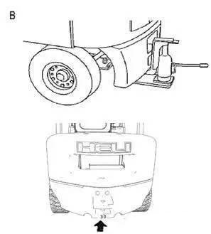 3.一定要在規定的頂起部位處把叉車頂起。